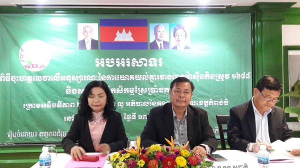 ព្រឹកថ្ងៃពុធ ១០រោច ខែមិគសិរ ឆ្នាំរកា ព.ស២៥៦១ ត្រូវនឹងថ្ងៃទី១៣ ខែធ្នូ គ.ស ២០១៧ ឯកឧត្តម ងួន សុជាតិ អភិបាលរងខេត្តកំពង់ធំបានអញ្ជើញជាអធិបតី ក្នុងពិធីចុះហត្ថលេខាលើអនុស្សាណៈ នៃការយោគយល់គ្នា រវាងរោងម៉ាស៊ីនកិនស្រូវ១៦៨៨ និងសហគមន៍ស្រែប្រាំងកសិកម្មកម្ពុជា នៅសណ្ថាគារក្លរៀសស្ថិតក្នុងភូមិ បល្ល័ង្កកើត សង្កាត់ដំរីជាន់ខ្លា ក្រុងស្ទឹងសែន ដោយមានការចូលរួមពីកញ្ញា បណ្ឌិត ចាន់ ផលលឿន នាយិកាគម្រោងជំរុញផលិតកម្មស្បៀង ឯកឧត្តម ចាន់ សីហា អគ្គនាយករងធនាគារអភិវឌ្ឍន៍ជនបទ និងតំណាងសហគមន៍កសិកម្មផលិតស្រូវចំណីទាំង១២ ក្នុងខេត្តកំពង់ធំ និងសៀមរាបប្រមាណជាង១០០ នាក់ ។