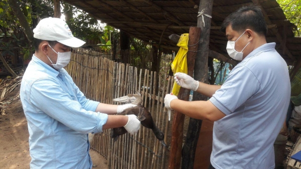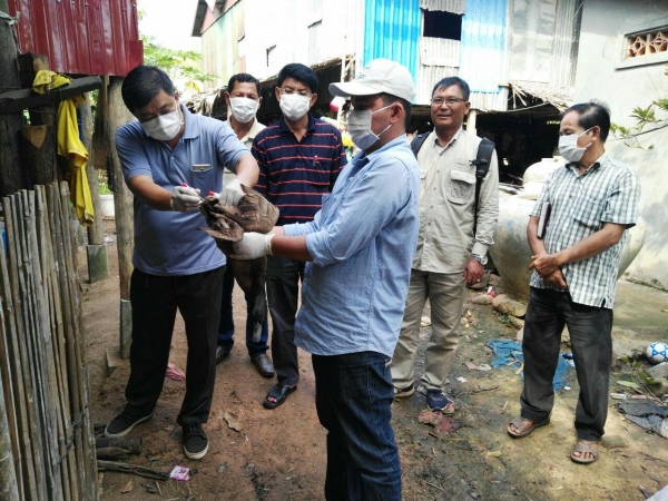 ការិយាល័យផលិតកម្ម និងបសុព្យាបាល ផ្នែកផលិតកម្ម និងបសុព្យាបាល នៃការិយាល័យកសិកម្មស្រុកស្ទោង និងភ្នាក់ងារសុខភាពសត្វភូមិប្រចាំស្រុកស្ទោង បានសហការណ៍ជាមួយក្រុមការងារវិទ្យាស្ថានស្រាវជ្រាវសុខភាពសត្វនិងផលិតកម្មសត្វ នៃអគ្គនាយកដ្ឋានសុខភាពសត្វ និងផលិតកម្មសត្វ ។ ចុះធ្វើការអង្កេតតាមដាននិងយកវត្ថុវិភាគសត្វទាចំនួន២០ក្បាលស្មើនឹង៤០វត្ថុវិភាគនៅឃុំសំព្រោច ស្រុកស្ទោង ។