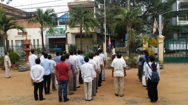 ចូលរួមគោរពទង់ជាតិព្រឹកថ្ងៃចន្ទ ១២រោច ខែមាឃ ឆ្នាំរកា នព្វស័កព.ស.២៥៦១ ត្រូវនឹងថ្ងៃទី១២ ខែកុម្ភៈ ឆ្នាំ២០១៨