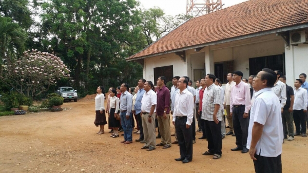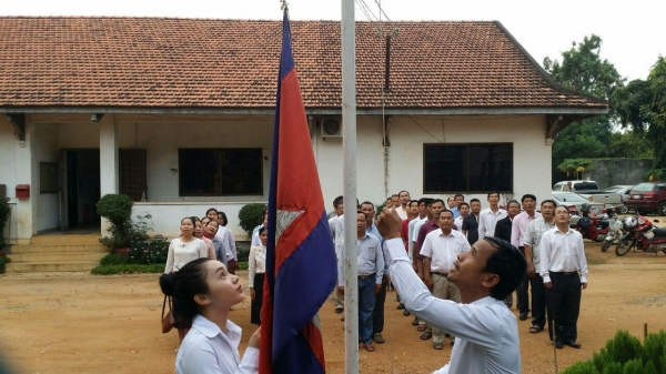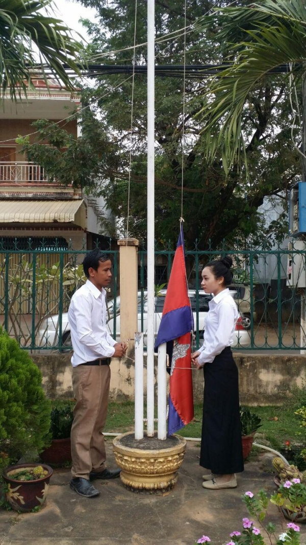 ចូលរួមគោរពទង់ជាតិព្រឹកថ្ងៃចន្ទ ៥កើត ខែផល្គុន ឆ្នាំរកា នព្វស័ក ព.ស.២៥៦១ ត្រូវនឹងថ្ងៃទី១៩ ខែកុម្ភៈ ឆ្នាំ២០១៨