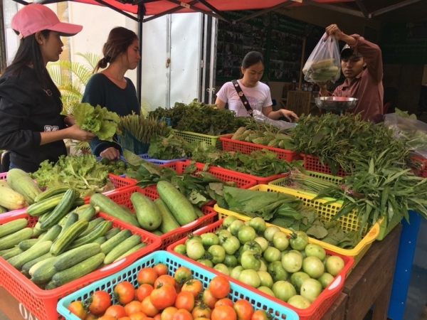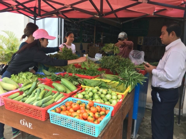 ថ្ងៃ ចន្ទ ៩កើត ខែស្រាពណ៍ ឆ្នាំច សំរឹទ្ធស័ក ២៥៦២ ត្រូវថ្ងៃទី ២០ ខែសីហា ២០១៨ ស្តង់លក់បន្លែសុវត្ថិភាព នៃមន្ទីរកសិកម្ម រុក្ខាប្រមាញ់ និងនេសាទ ខេត្តកំពង់ធំ ស្តង់យើងខ្ញុំមានលក់បន្លែសុវត្ថិភាព កសិផល កែច្នៃ ក្នុងស្រុក (គម្រោងជំរុញផលិតកម្មស្បៀង)
