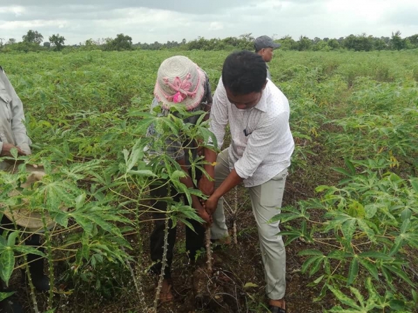 ក្រុមការងារនៃមន្ទីកសិកម្ម រុក្ខាប្រមាញ់និងនេសាទខេត្តកំពង់ធំថ្នាក់ខេត្ត និងន្នាក់ស្រុកចុះពិនិត្យស្ថានភាពការប្រមូលផលដំណាំដំឡូងមី