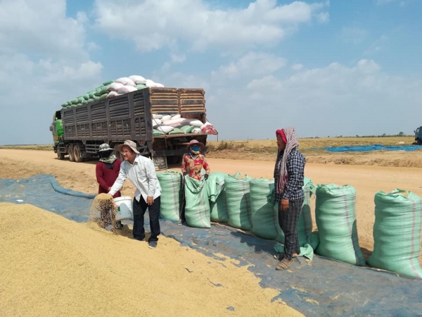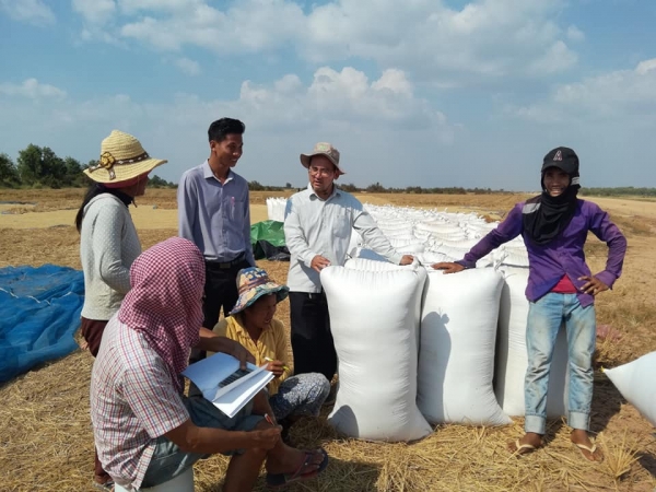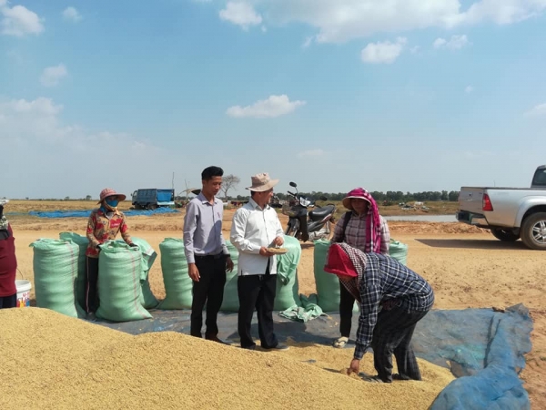 លោក ធីវ វណ្ណធីរ ប្រធានមន្ទីរកសិកម្ម រុក្ខាប្រមាញ់ និងនេសាទ ខេត្តកំពង់ធំ អញ្ចើញចុះសួរសុខទុក បងប្អូនកសិករដែលកំពុងប្រមូលផលស្រូវ និងពិនិត្យមើលស្ថានភាពតម្លៃស្រូវ នៅឃុំស្រយ៉ូវ ក្រុងស្ទឹងសែន ខេត្តកំពង់ធំ ។ តម្លៃស្រូវពូជIR ៥០៤ សើម ៧១០រៀល/គ.ក្រ ស្ងួត ៧៣០រៀល/គ.ក្រ