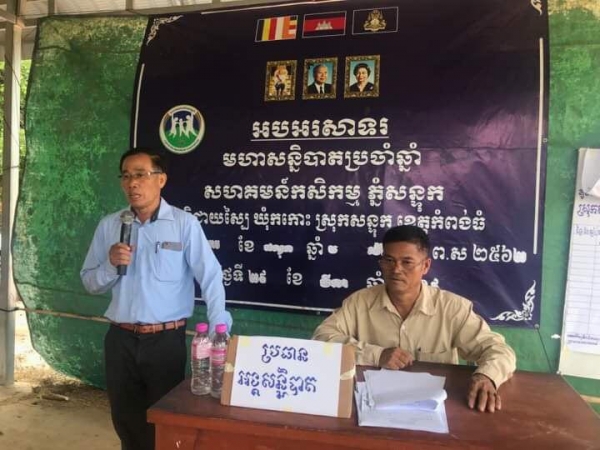 លោក ធីវ វណ្ណធីរ ប្រធានមន្ទីរកសិកម្ម រុក្ខាប្រមាញ់ និងនេសាទខេត្តកំពង់ធំ បានចូលរួមមហាសន្និបាតប្រចាំឆ្នាំ សហគមន៍កសិកម្ម ភ្នំសន្ទុក ស្ថិតនៅក្នុងភូមិជាយស្បៃ ឃុំកកោះ ស្រុកសន្ទុក ខេត្តកំពង់ធំ ក្នុងឱកាសនោះដែរលោកប្រធានមន្ទីរក៏បានផ្តល់អនុសាសន៍ និងលើកទឹកចិត្តដល់ប្រជាកសិករឱ្យខិតខំផលិតនូវផលិតផលកសិកម្ម ឱ្យបានច្រើនសម្រាប់ផ្គត់ផ្គង់តម្រូវការទីផ្សារ និងដើម្បីលើកកំពស់ជីវភាពរបស់បងប្អូនប្រជាកសិករ ។