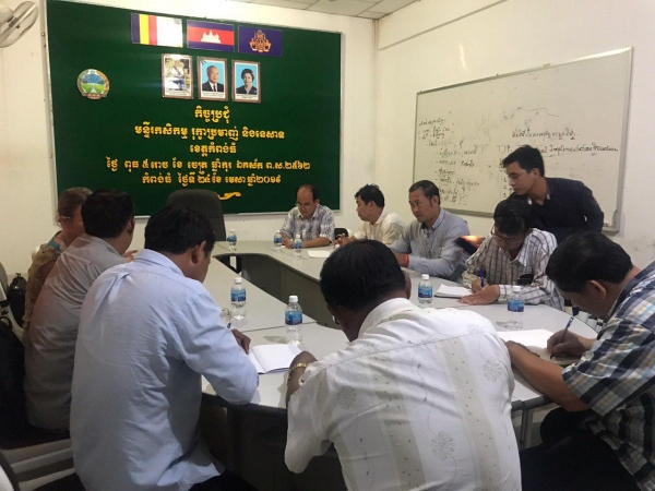 លោក ធីវ វណ្ណធីរ ប្រធានមន្ទីរកសិកម្ម រុក្ខាប្រមាញ់ និងនេសាទខេត្តកំពង់ធំ ជួបប្រជុំជាមួយក្រុមការងាររបស់អង្គការ (FAO) ពាក់ព័ន្ធនឹងការចុះធ្វើសម្ភាសន៍សាកល្បង ចន្លោះការធ្វើជំរឿនកសិកម្ម ដោយប្រើប្រាស់ Tabled សាក់ល្បនៅក្នុងឃុំពពក ស្រុកស្ទោង ខេត្តកំពង់ធំ ដែលមានអ្ននកចូលរួមចំនួន ១០នាក់ ស្រី ២នាក់ ។