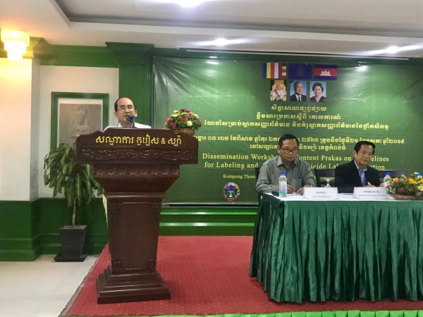ថ្ងៃអង្គារ ៣រោច ខែពិសាខ ឆ្នាំកុរ ឯកស័ក ព.ស.២៥៦៣ ត្រូវនឹងថ្ងៃទី២១ ខែឧសភា ឆ្នាំ២០១៩ ក្រោមកិច្ចសហការរវាងនាយកដ្ឋាននីតិកម្មកសិកម្ម នឹងមន្ទីរកសិកម្ម រុក្ខាប្រមាញ់ និងនេសាទខេត្តកំពង់ធំ ដែលឧបត្ថមដោយគម្រោង ( CAVAC ) បានរៀបចំសិក្ខាសាលាផ្សព្វផ្សាយខ្លឹមសារប្រកាសស្តីពី " គោលការណ៍ណែនាំសម្រាប់ស្លាកសញ្ញាព័ត៌មាន និងគំរូស្លាកសញ្ញាព័ត៌មាននៃថ្នាំកសិកម្ម ” ក្រោមអធិបតីភាព ឯកឧត្តម ឡោ រស្មី អនុរដ្ឋលេខាធិការក្រសួងកសិកម្ម រុក្ខាប្រមាញ់ និងនេសាទ និងមានការចូលរួមដោយ លោក ធីវ វណ្ណធីរ ប្រធានមន្ទីកសិកម្ម រុក្ខាប្រមាញ់ និងនេសាទខេត្តកំពង់ធំ លោក ភុំ រ៉ា ប្រធាននាយកដ្ឋាននីតិកម្មកសិកម្ម នឹងតំណាងក្រុមហ៊ុនផ្គត់ផ្គងជីថ្នាំកសិកម្ម នឹងអាជីវករ លក់ជីថ្នាំកសិកម្ម ដែលមានអ្នកចូលរួមសរុបចំនួន ១៥៤នាក់ ស្រី ៣៩នាក់។