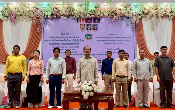 លោក ធីវ វណ្ណធីរ ប្រធានមន្ទីរកសិកម្ម រុក្ខាប្រមាញ់ និងនេសាទខេត្តកំពង់ធំ អញ្ជើញជាធិបតីក្នុងកម្មវិធី វេទិកាស្តីពី "ការភ្ជាប់ទំនាក់ទំនងរវាងវិស័យឯកជន និងអ្នកពាក់ព័ន្ធជាមួយការធ្វើអាជីវកម្មសហគមន៍កសិកម្ម ប្រកបដោយបរិយាប័ន្ន ក្នុងខេត្តកំពង់ធំ'' នៅភោជនីយដ្ឋានឡូវ គឹមសេង ខេត្តកំពង់ធំ ។