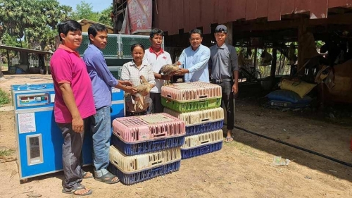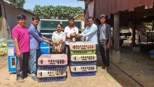 នាថ្ងៃចន្ទ ៣រោច ខែជេស្ឋ ឆ្នាំជូត ទោស័ក ព.ស.២៥៦៤ ត្រូវនឹងថ្ងៃទី០៨ ខែមិថុនា ឆ្នាំ២០២០ លោកអនុប្រធានការិយាល័យក្សេត្រសាស្រ្ត និងមន្រ្តីស្រុកកំពង់ស្វាយ នៃបានយកសម្ភារ:សម្រាប់ផលិតកម្មភ្ញាស់កូនមាន់មានៈទូរភ្ញាស់កូនមាន់ ទ្រុងផ្សាំកូនមាន់ និងមេមាន់ពូជចំនួន៥០ក្បាល ជូនកសិករបង្ហាញចំនួន០២បង្ហាញ ស្ថិតនៅឃុំត្បែង និងឃុំកំពង់ស្វាយ ខេត្តកំពង់ធំ កម្មវិធីនេះគាំដោយគម្រោងកាត់បន្ថយភាពក្រីក្ រនិងអភិវឌ្ឍន៍កសិកម្មខ្នាតតូចតំបន់ទន្លេសាបTSSD_AF ។