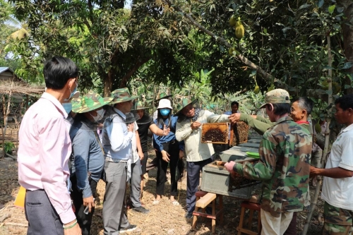 បន្ទាប់ពីកិច្ចប្រជុំចប់ក្រុមការងារក៏បានចុះពិនិត្យសកម្មភាពនៅតាមតំបន់គោលដៅផងដែរ ជាពិសេសបានចុះពិនិត្យ មើលការចិញ្ចឹមឃ្មុំជាបណ្ដុំរបស់សមាជិកសហគមន៍ព្រៃឈើអូសោម ស្ថិតនៅភូមិសាលាវិស័យ ឃុំសាលាវិស័យ ស្រុកប្រាសាទបល្ល័ង្ក ខេត្តកំពង់ធំ ។