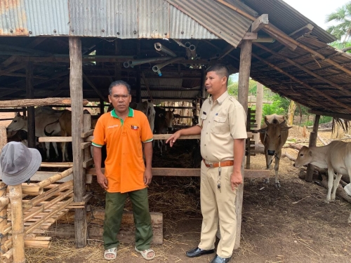 ១- លោក សួន ឡូត មន្ត្រីការិយាល័យផលិតកម្ម និងបសុព្យាបាលខេត្ត ចុះតាមដានស្ថានភាពជំងឺសត្វនៅភូមិមហរ ឃុំជ័យ ស្រុកកំពង់ស្វាយ។