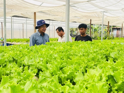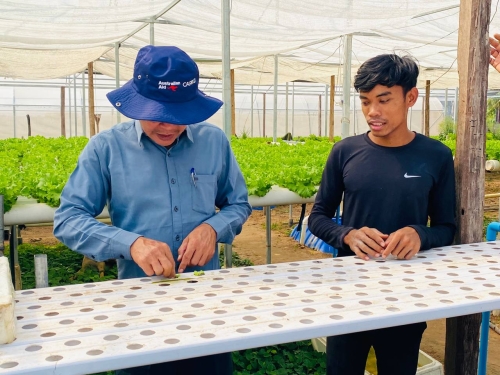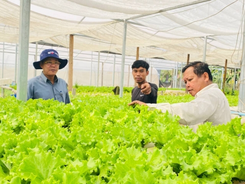 នាព្រឹកថ្ងៃទី១៤ ខែកុម្ភៈ ឆ្នាំ២០២៤ លោក ប៉ែន វណ្ណរិទ្ធ ប្រធានមន្ទីរកសិកម្ម រុក្ខាប្រមាញ់ និងនេសាទខេត្តកំពង់ធំ និងលោក អ៊ឹម ប៊ុនថាន ប្រធានការិយាល័យក្សេត្រសាស្រ្ត និងផលិតភាពកសិកម្ម បានចុះពិនិត្យប្រព័ន្ធស្រោចស្រពបន្លែ និងទីតាំងដាំបន្លែលើទឹករបស់សហគមន៍ផលិតបន្លែសុវត្ថិភាពបុស្សម្កាក់ ស្ថិតនៅក្នុងឃុំត្រពាំងឬស្សី ស្រុកកំពង់ស្វាយ ។