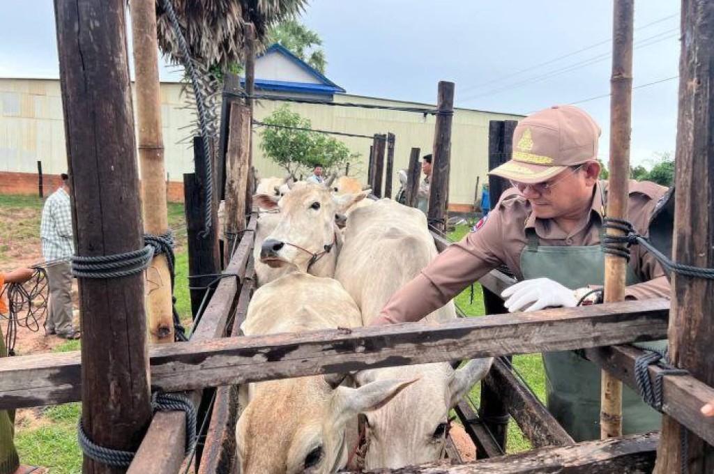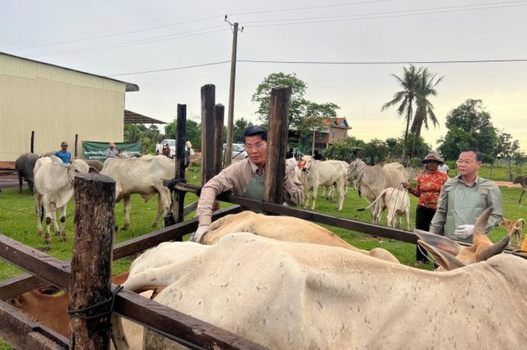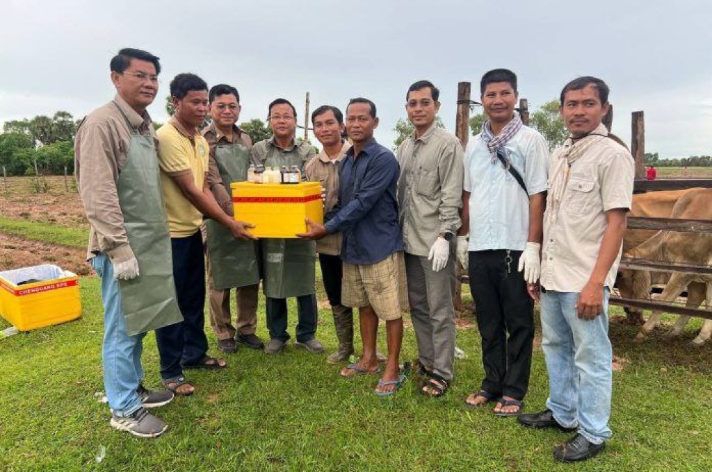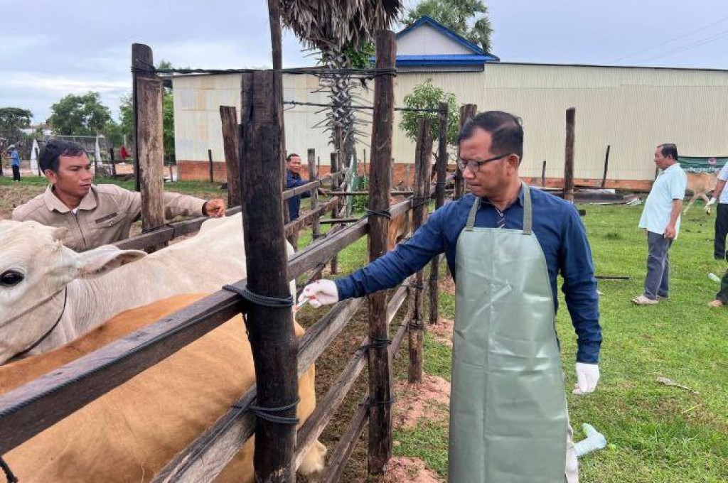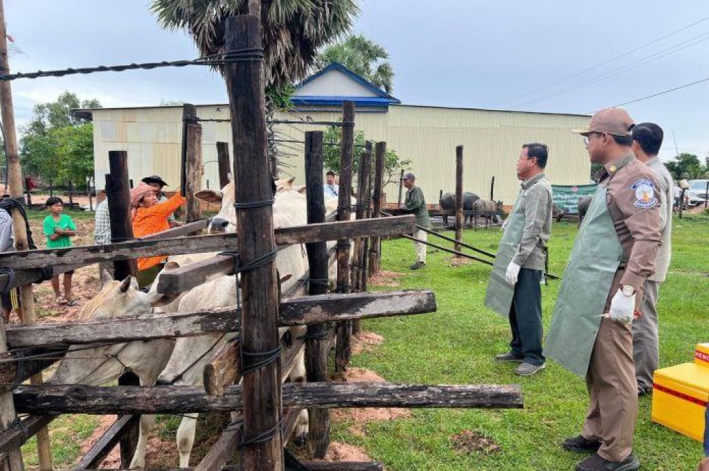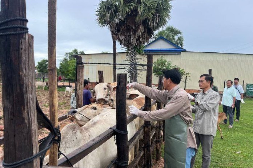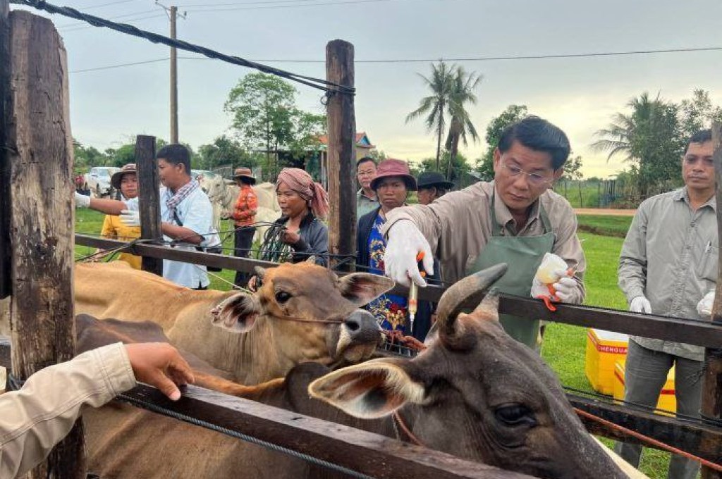 នាព្រឹកថ្ងៃទី២៥ ខែ មិថុនា ឆ្នាំ២០២៤ លោក ប៉ែន វណ្ណរិទ្ធ ប្រធានមន្ទីរកសិកម្ម រុក្ខាប្រមាញ់ និងនេសាទខេត្តកំពង់ធំ បានដឹកនាំ លោក ចាន់ បញ្ញាវ័ន្ត ប្រធានការិយាល័យផលិតកម្ម និងបសុព្យាបាលខេត្ត និង មន្ត្រីជំនាញ ភ្នាក់ងារសុខភាពសត្វភូមិ និងមានកិច្ចសហការពីលោក អ៊ុត វណ្ណរ៉ា អភិបាលនៃគណ:អភិបាលស្រុកកំពង់ស្វាយ រួមនិងមន្ត្រី អាជ្ញាធរមូលដ្ឋាន បានបើកយុទ្ធនាការចាក់ថ្នាំការពារជម្ងឺឆ្លងសត្វគោក្របី ជូនដល់កសិករចិញ្ចឹមសត្វ ស្ថិតនៅភូមិសំរោង ឃុំត្រពាំងឬស្សី ស្រុកកំពង់ស្វាយ ។
